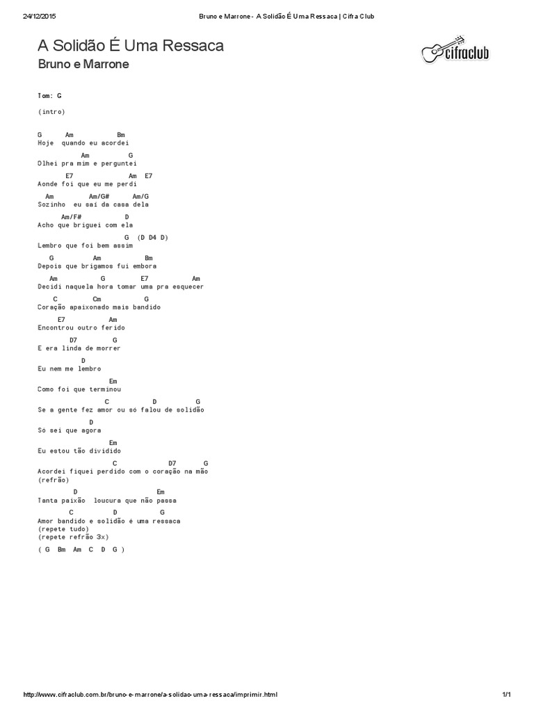 Bruno E Marrone A Solidao E Uma Ressaca Cifra Club - O maior site de cifras gospel do brasil.